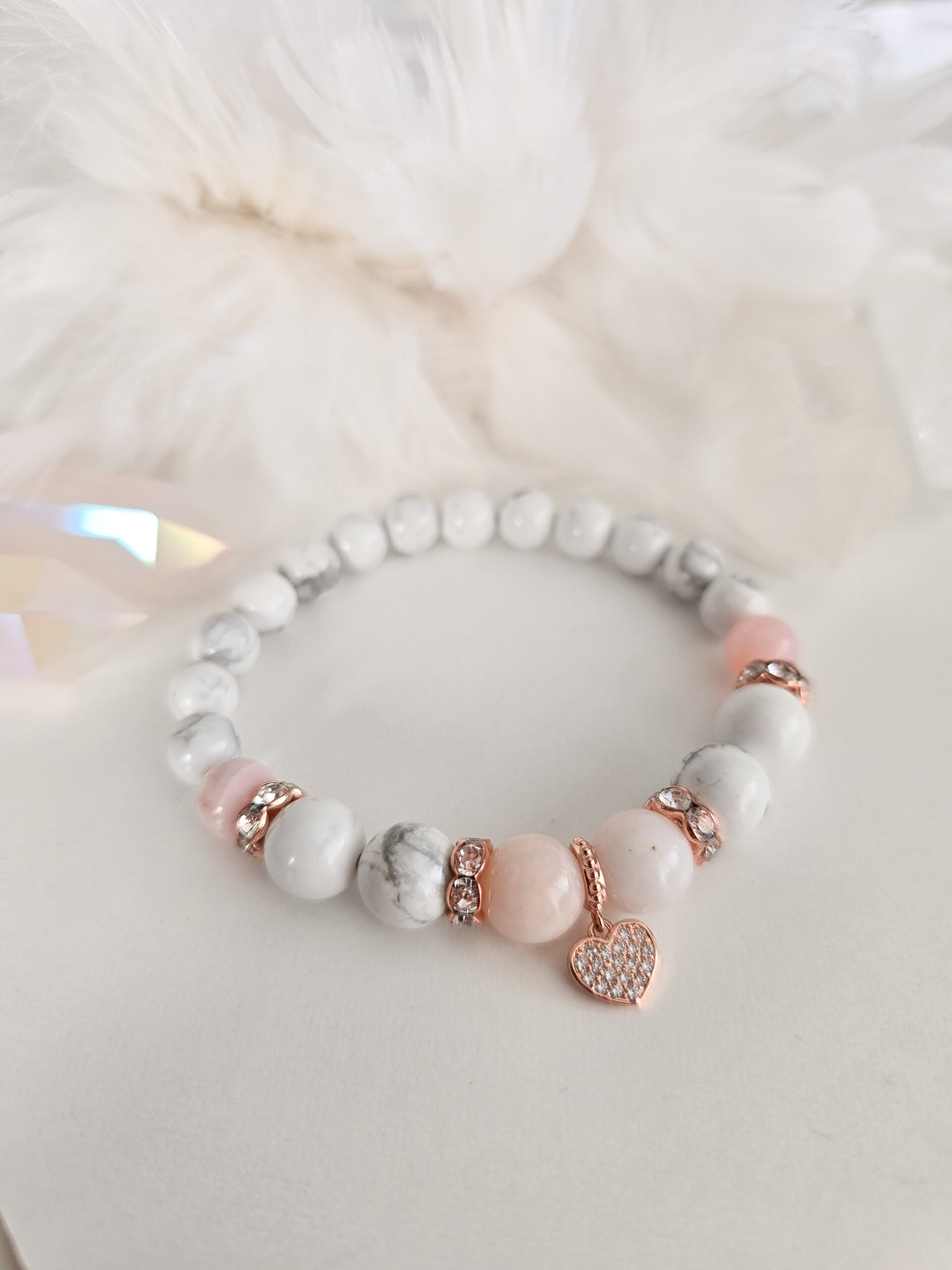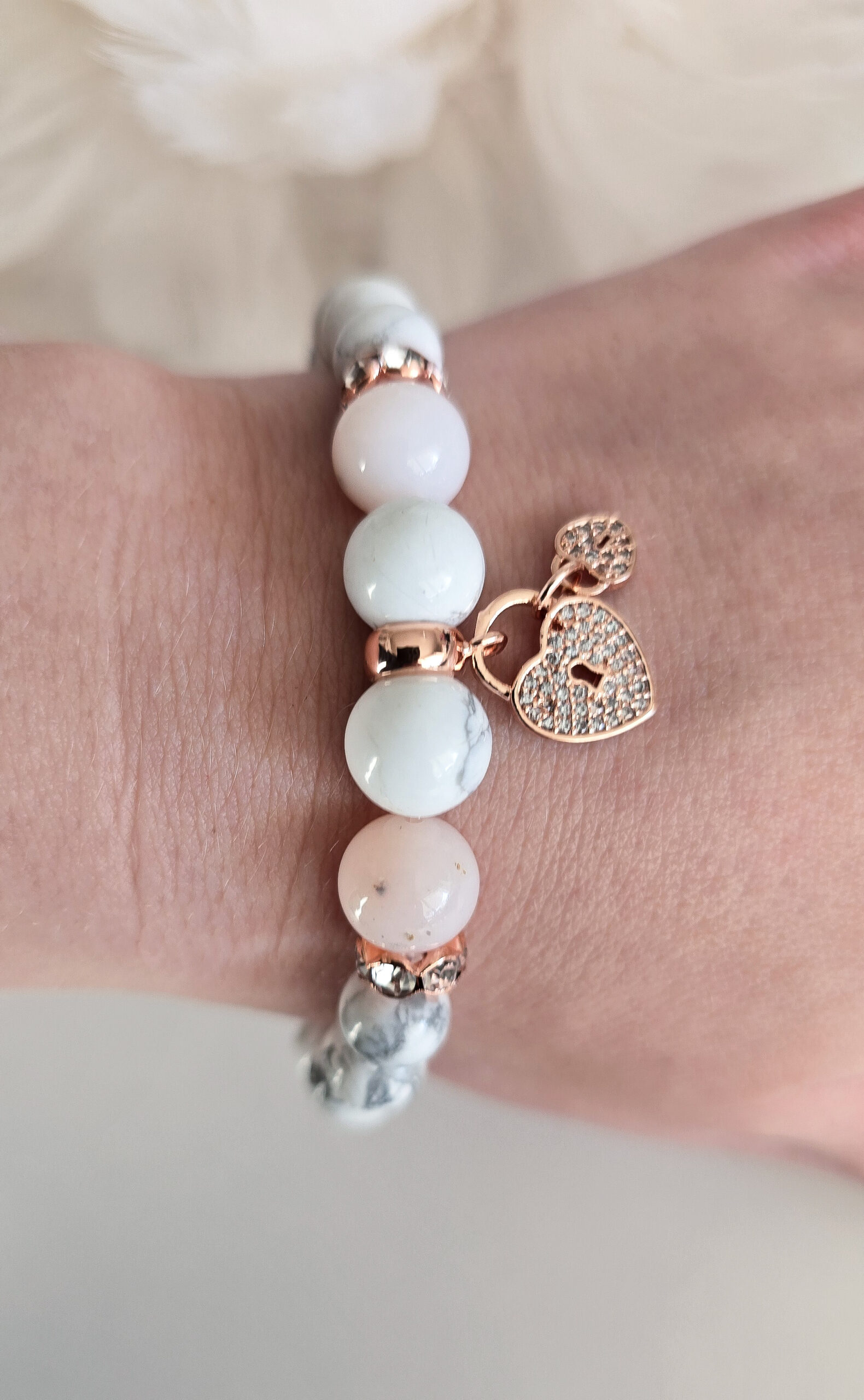 Antud käevõrus on kasutatud marmorit meenutavat hauliiti ja roosat opaali.